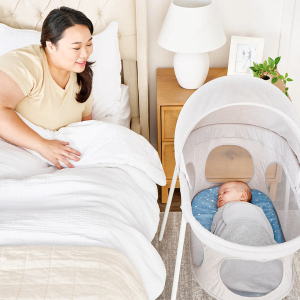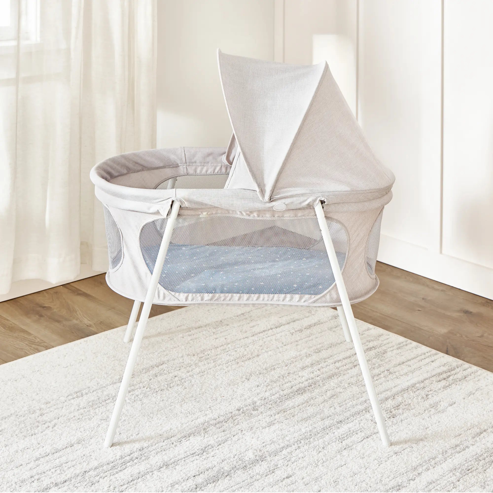 The Regalo® Baby Basics® Infant Bassinet with Canopy gives baby a comfortable spot to relax and sleep at home or on the go. The canopy provides additional shade and comfort for relaxing naps, whether you are at home, taking a vacation, or popping over to the grandparents.