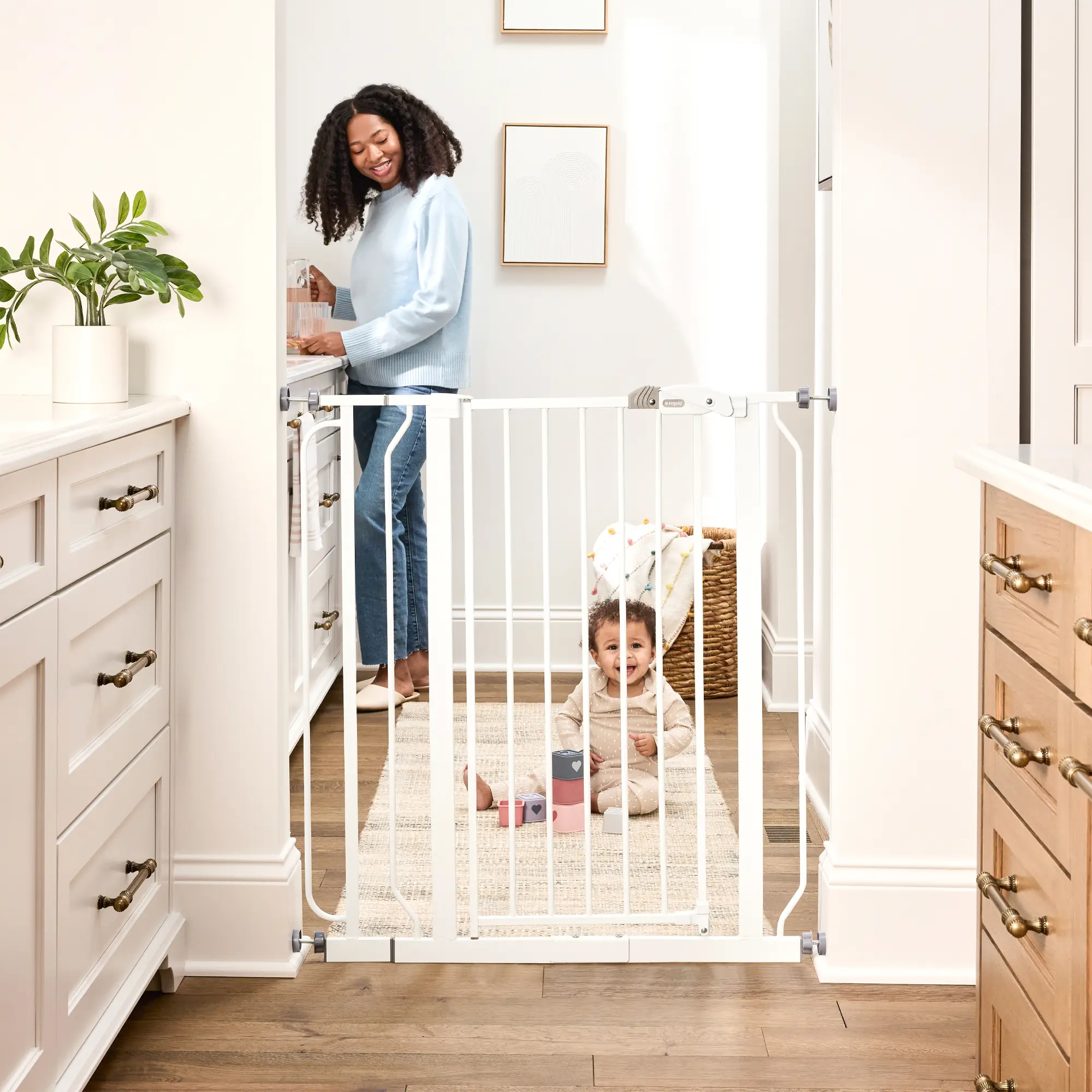 An essential tool for homes with young children, the Regalo® Easy Step® Extra Tall White Safety Gate is a safe and convenient way to contain and protect both your child and home.
