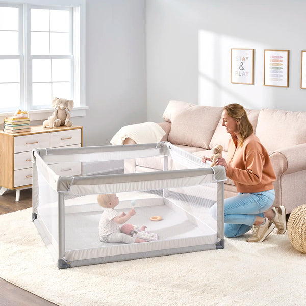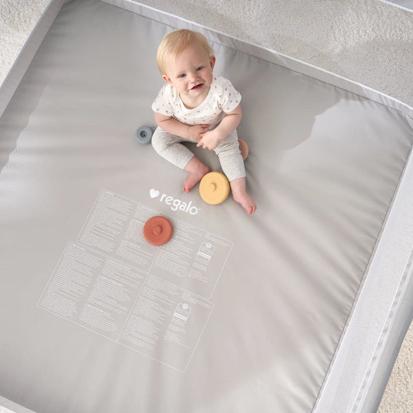 The Regalo® Soft Sided Play Yard is a simple lightweight play yard for your home. Our simple, sleek design keeps your little one safe and contained while easily fitting in with any home décor.