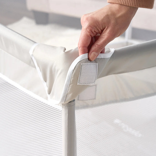 The Soft Sided Play Yard provides ample space for your little one with ventilated mesh sides and it easily wipes clean. Create a safe space for your little one to relax and play with our Soft Sided Play Yard.